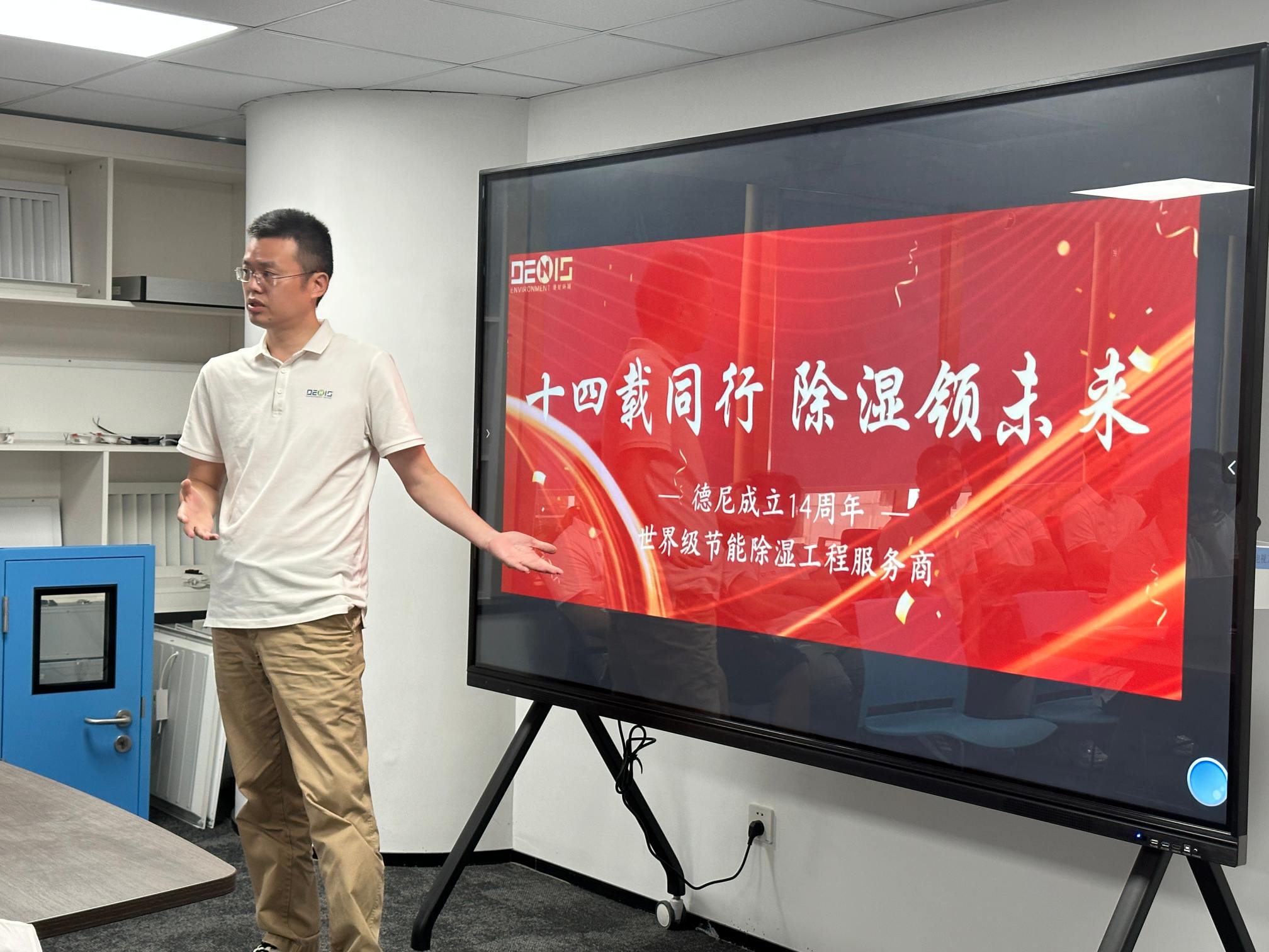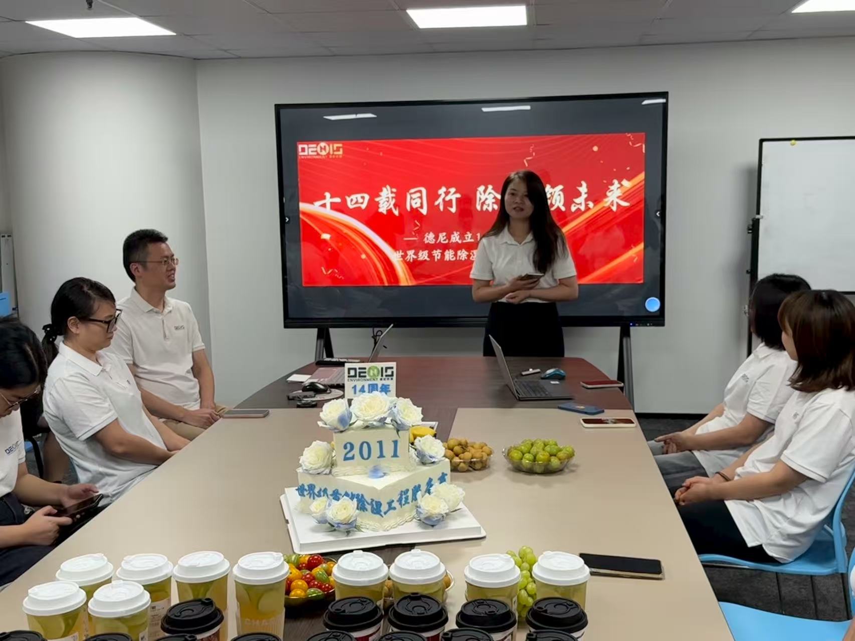 时光镌刻成长的足迹,奋斗书写前行的篇章。今日,德尼公司14周年庆在会议室温馨启幕,全体员工齐聚一堂,共同庆祝这一重要时刻,并展望作为“世界级节能除湿工程服务商”的全新战略征程。这不仅是一场周年庆典,更是我们迈向新目标的集体启航。